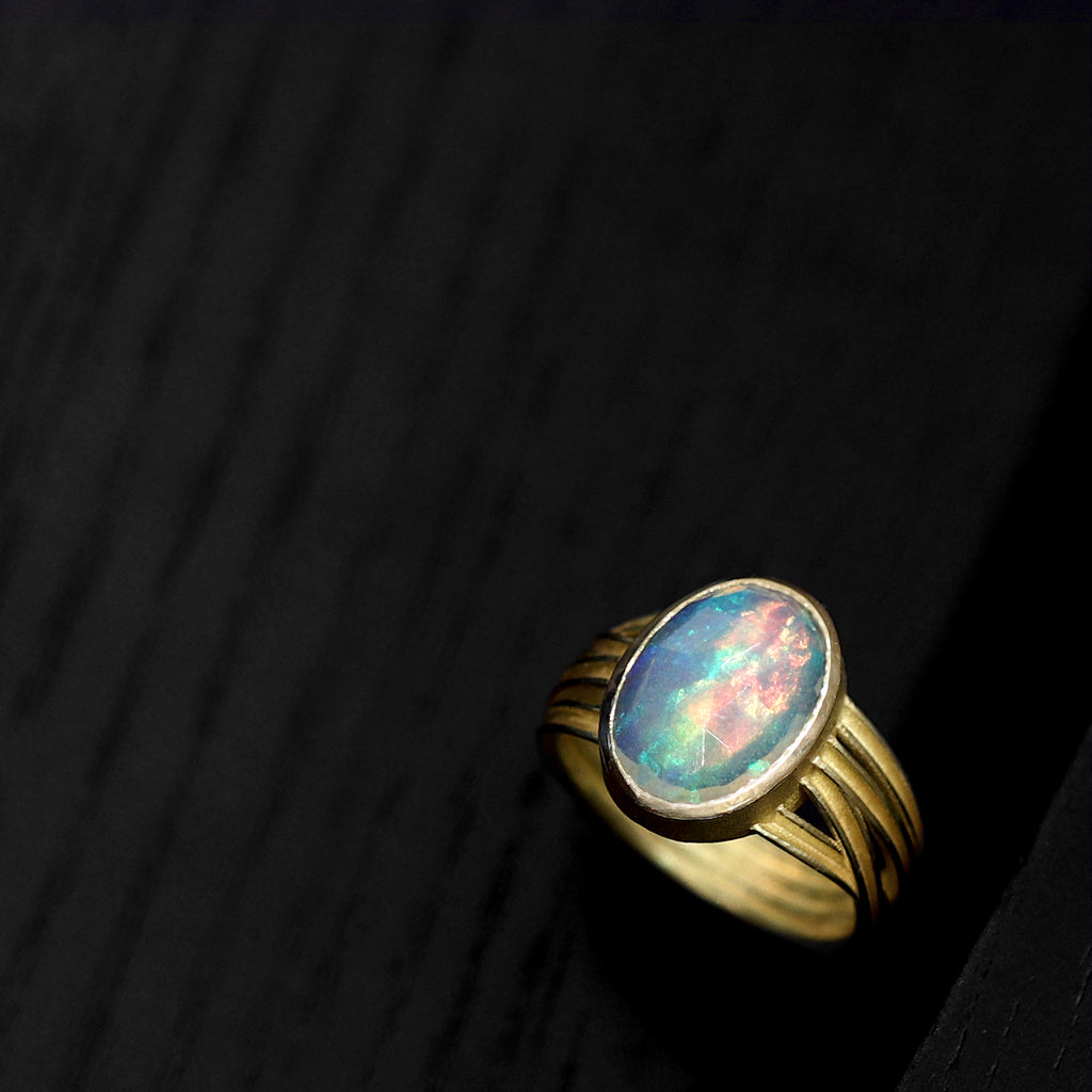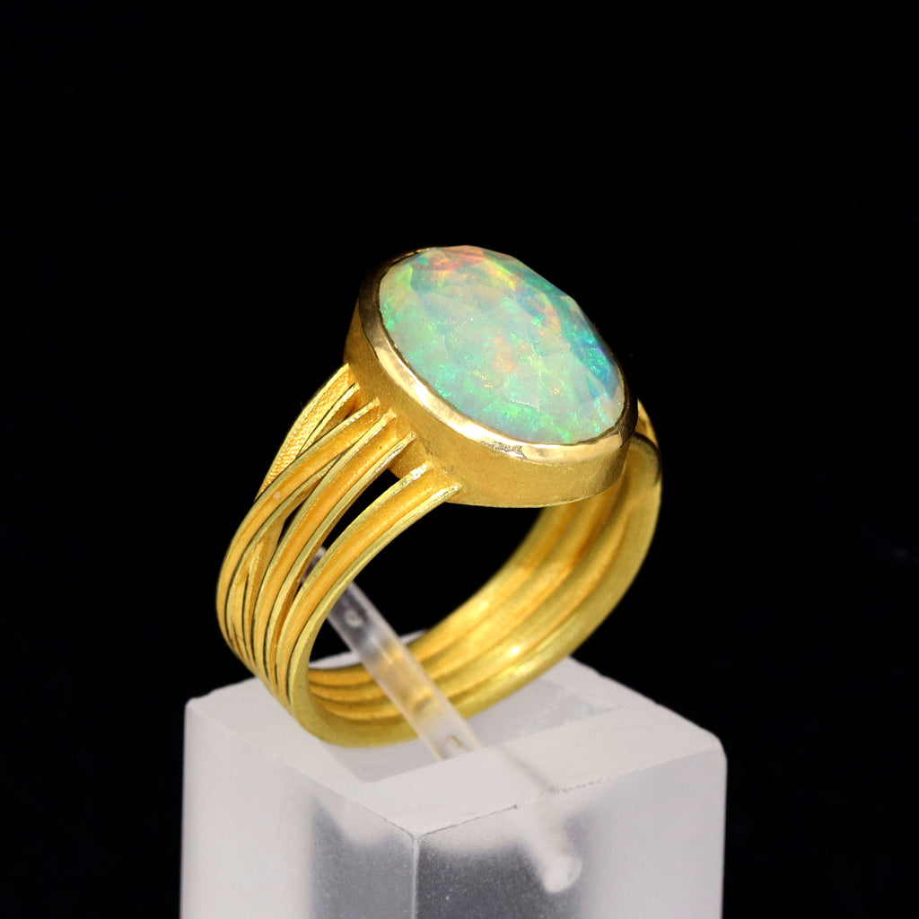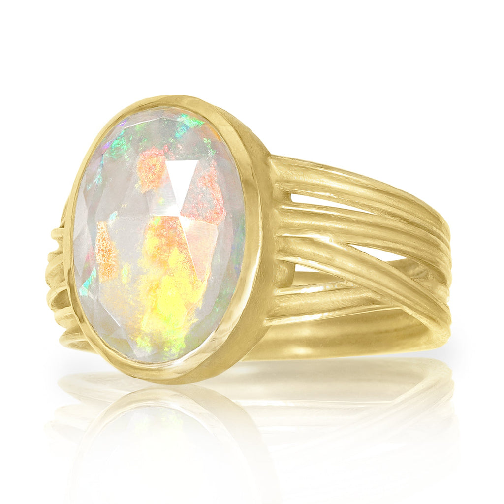 Barbara Heinrich Fiery Faceted Ethiopian Opal Multiwrap Gold Ring