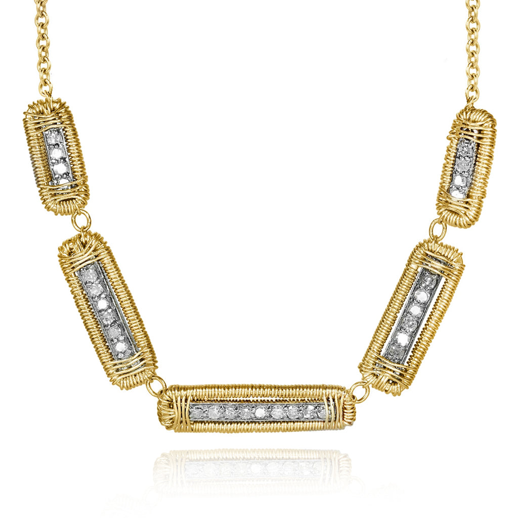 Dana Kellin Five Diamond Bar Links Wire-Wrap Necklace