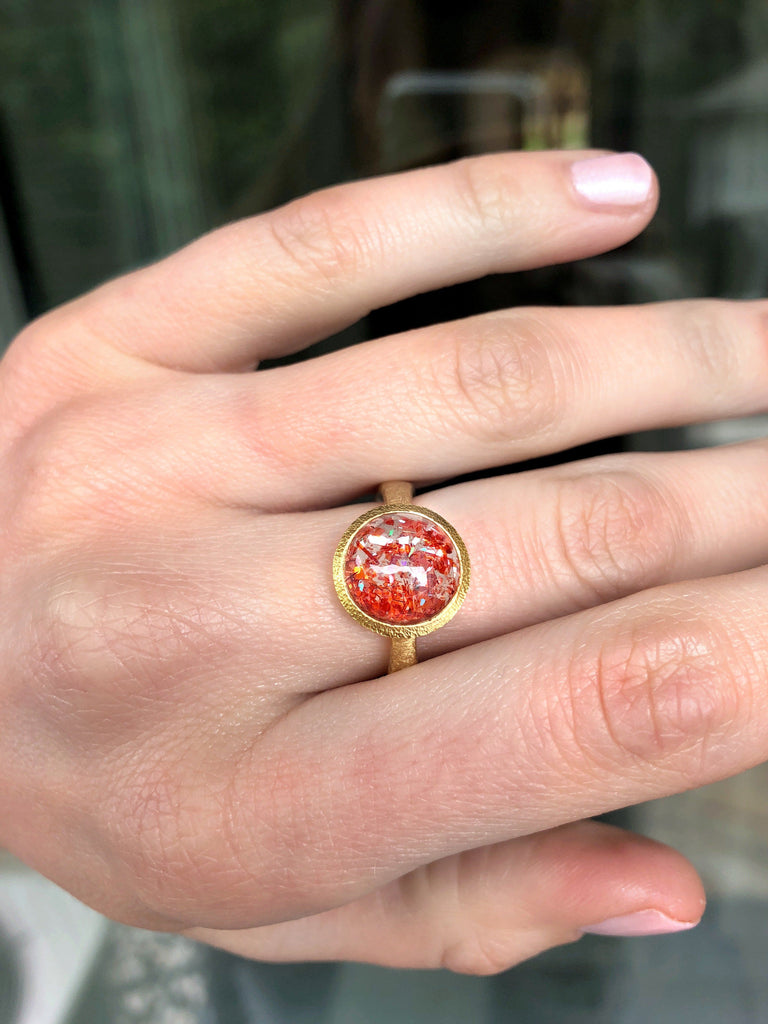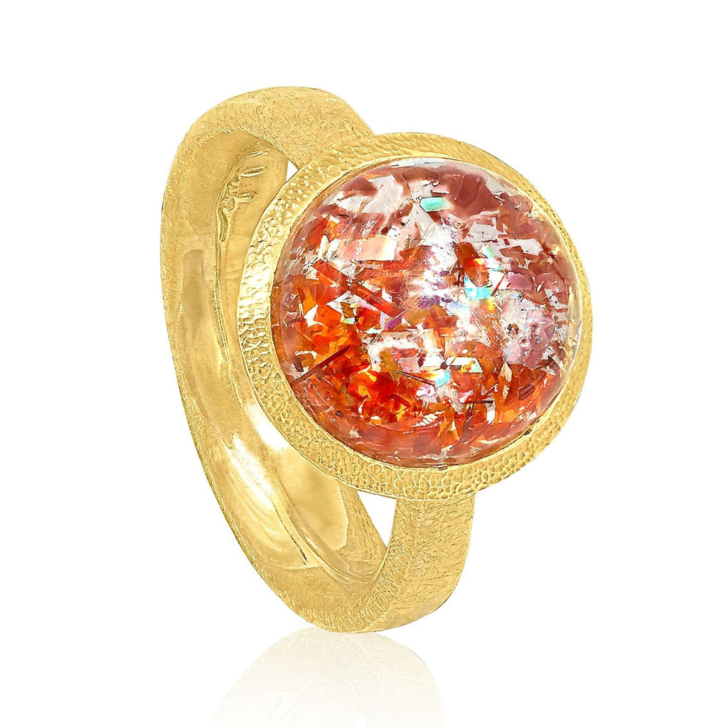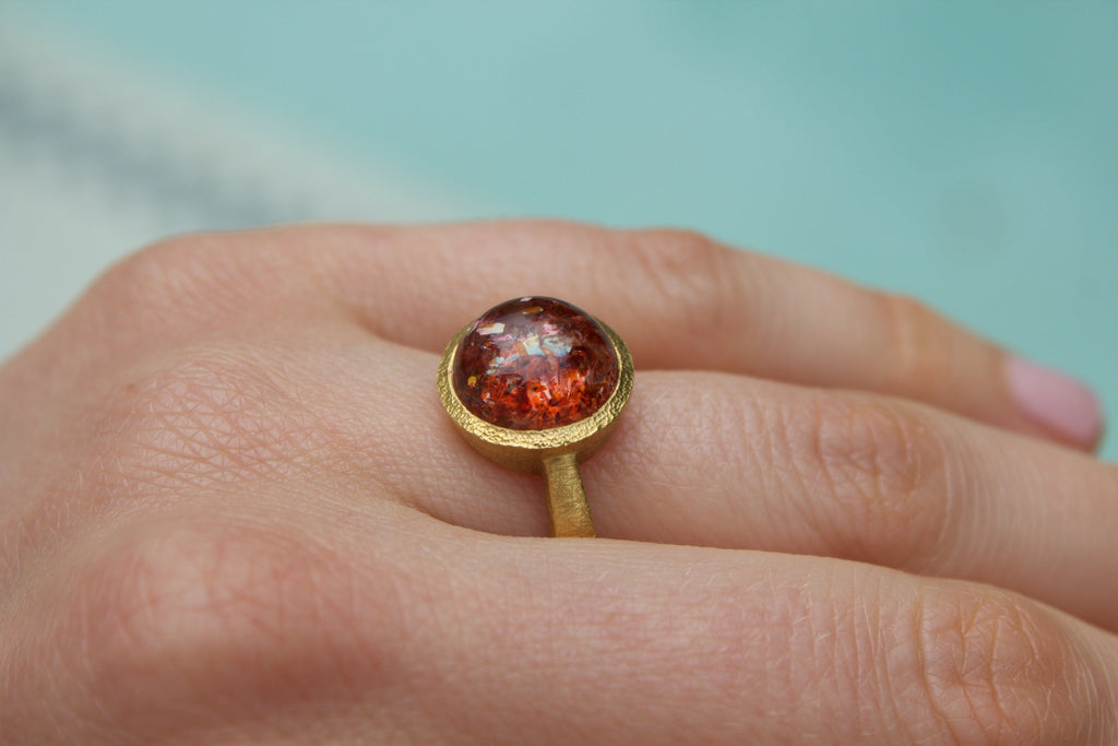 Devta Doolan Prized Natural Rainbow Sunstone One of a Kind Gold Ring