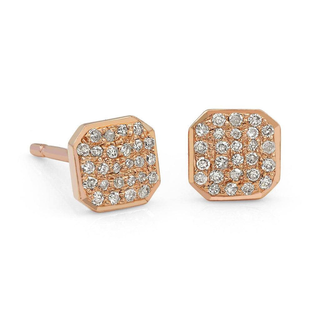 Square Diamond Stud Earrings handcrafted by jewelry artist Liza Beth in 14k rose gold with pave diamonds (6mm). Perfect for everyday wear or a special occasion.