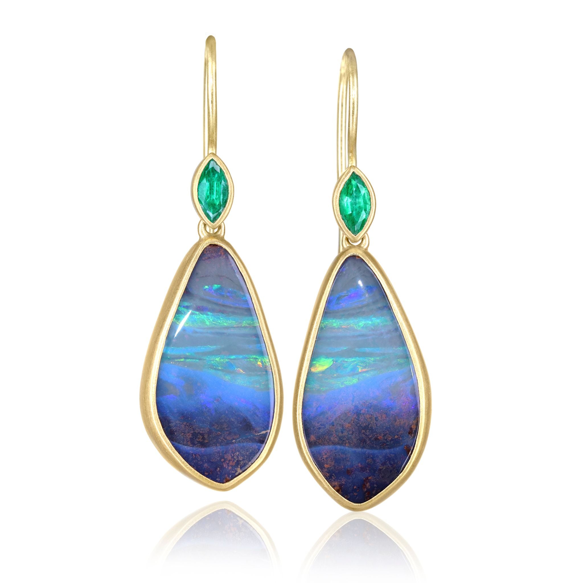 Lola Brooks Oceanic Boulder Opal Emerald Gold Drop Earrings