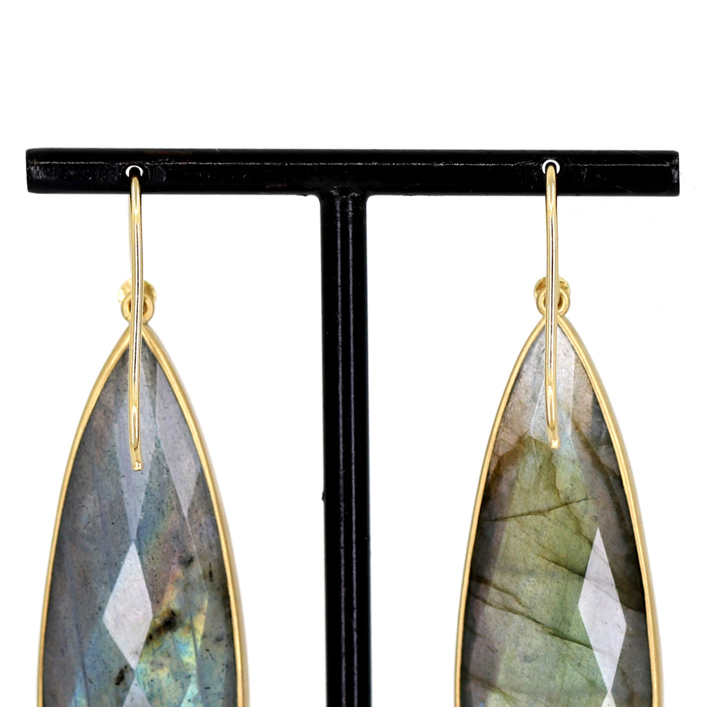 Lola Brooks One of a Kind Faceted Labradorite Long Gold Drop Earrings