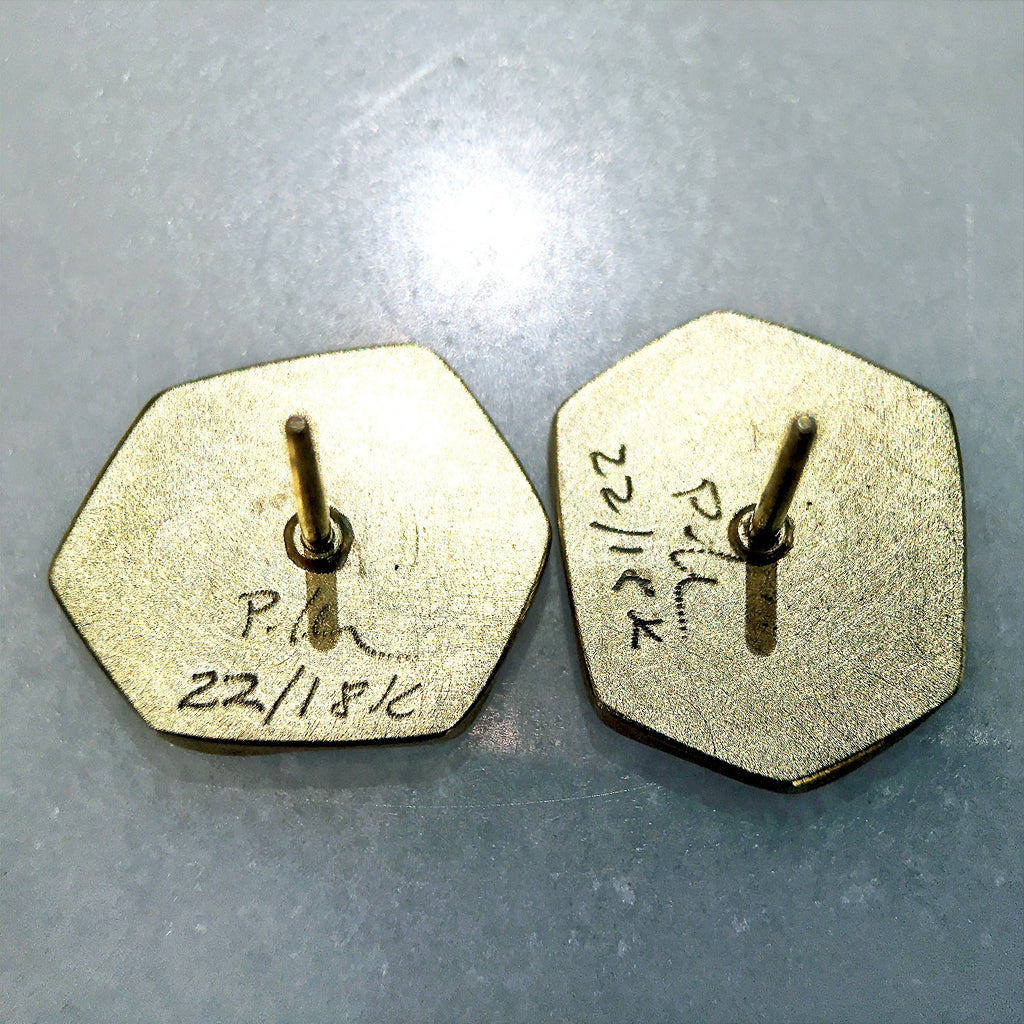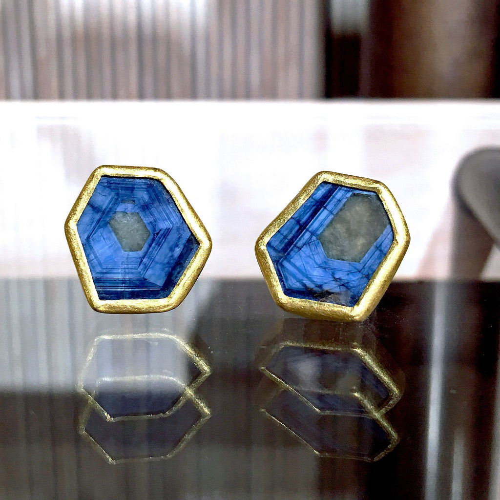 Petra Class One of a Kind Blue Sapphire Gold Hexagonal Stud Earrings