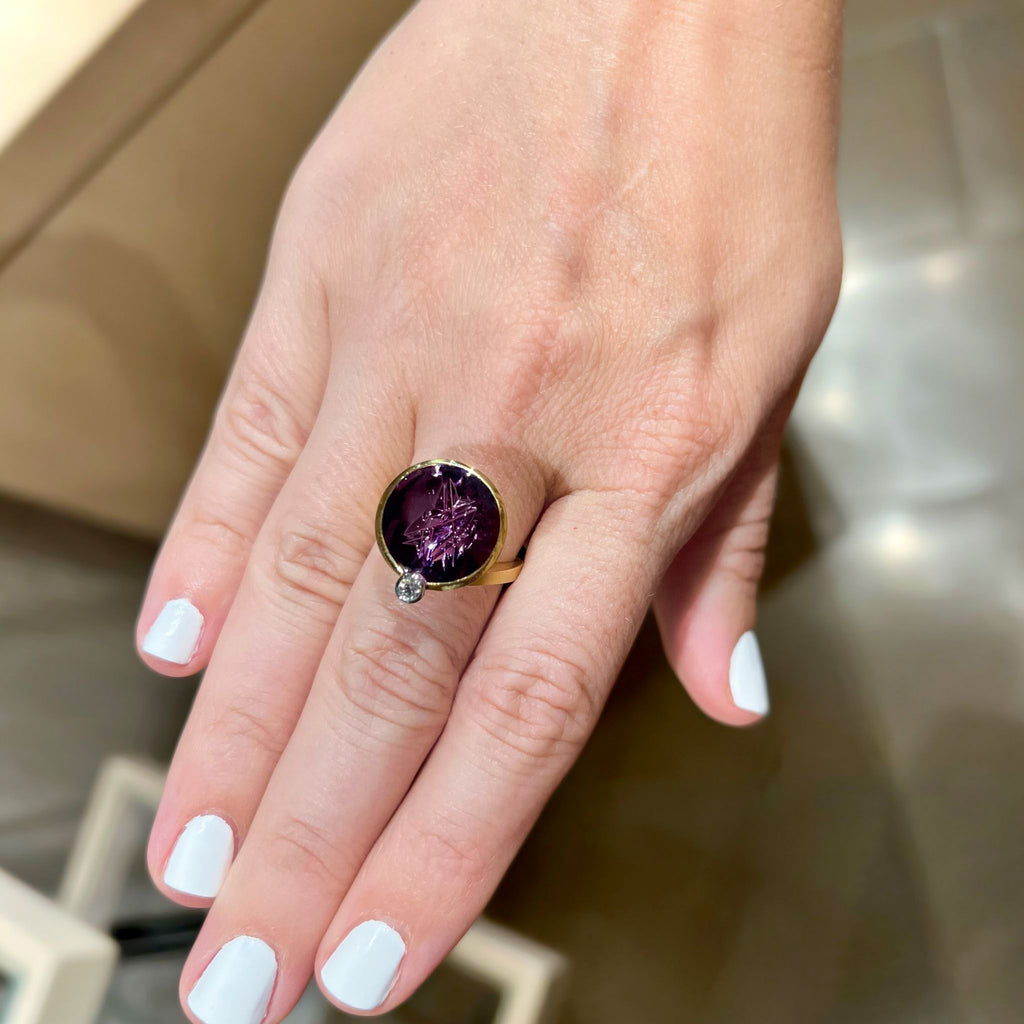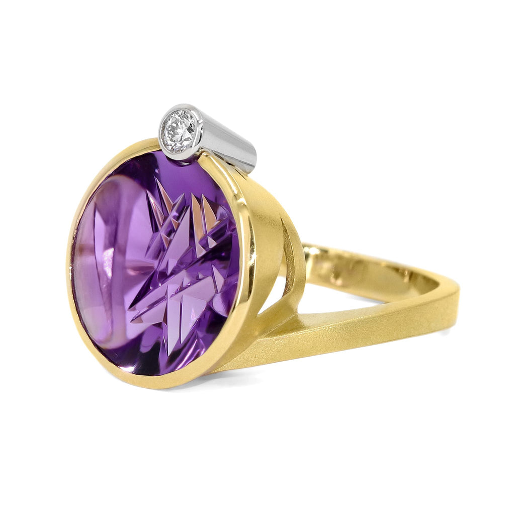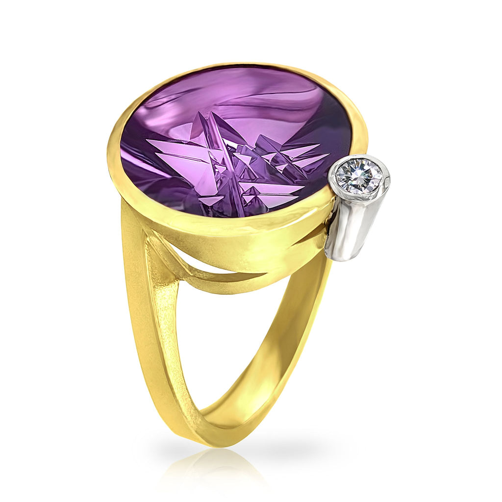 Atelier Munsteiner Amethyst Diamond Hand-Carved Gold Ring