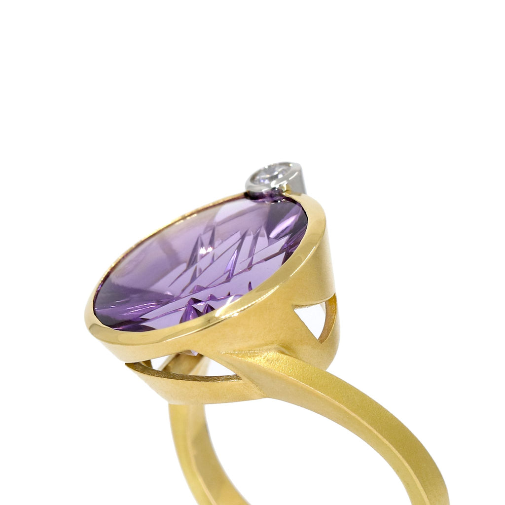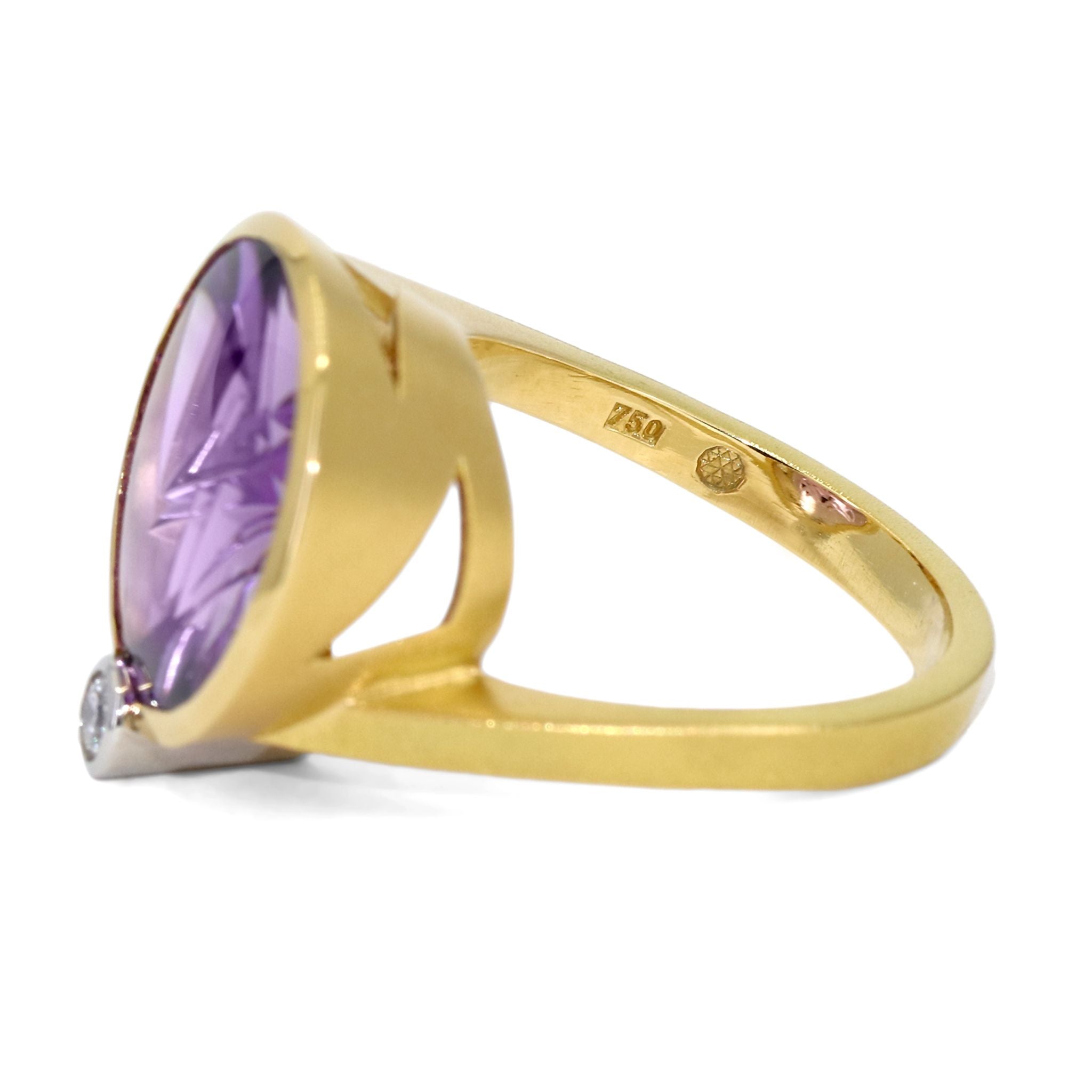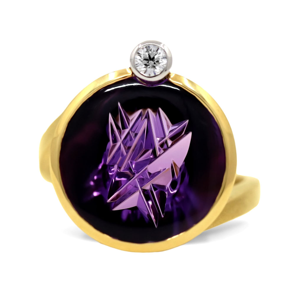 Atelier Munsteiner Amethyst Diamond Hand-Carved Gold Ring