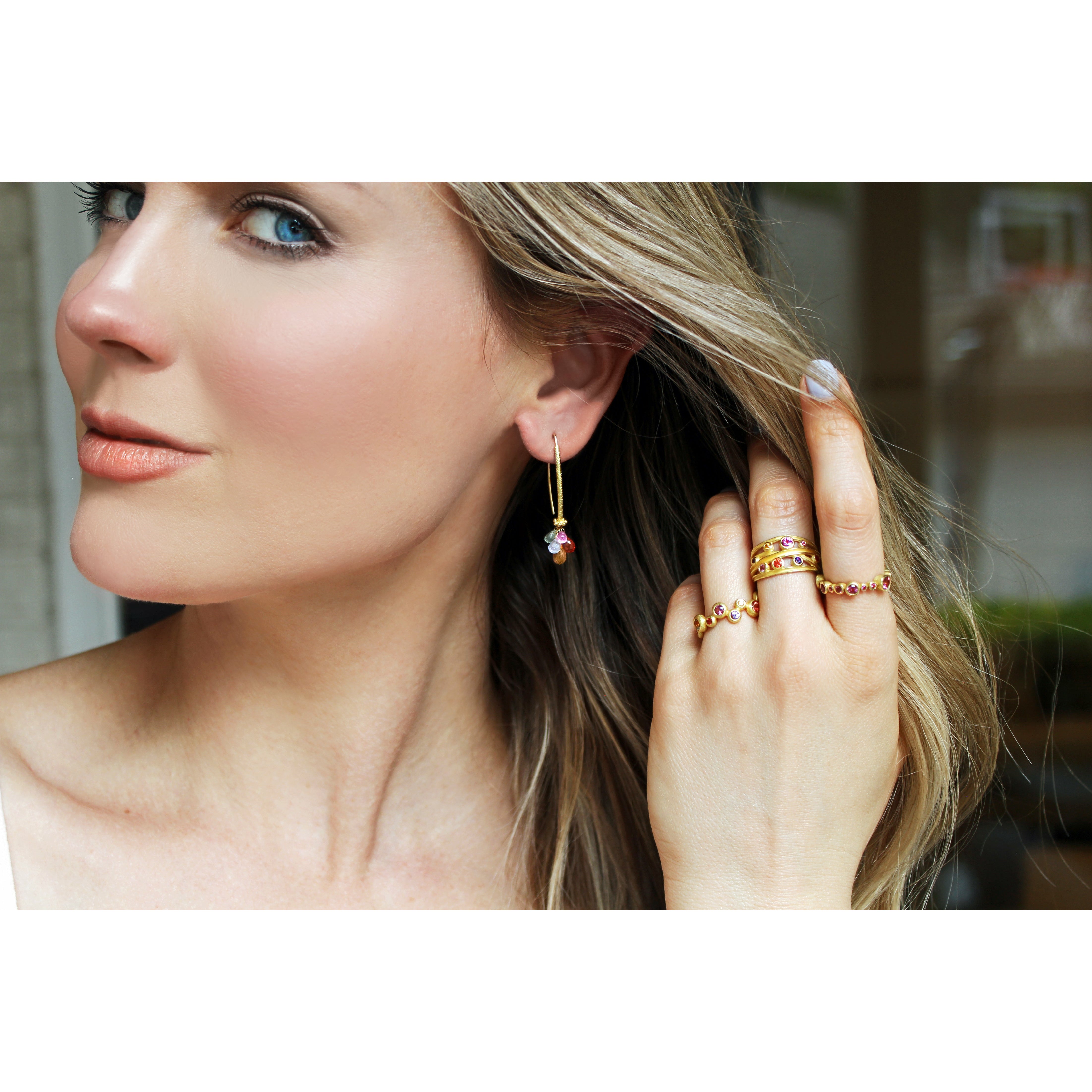 Barbara Heinrich Multicolored Sapphire Navette Wire Drop Earrings