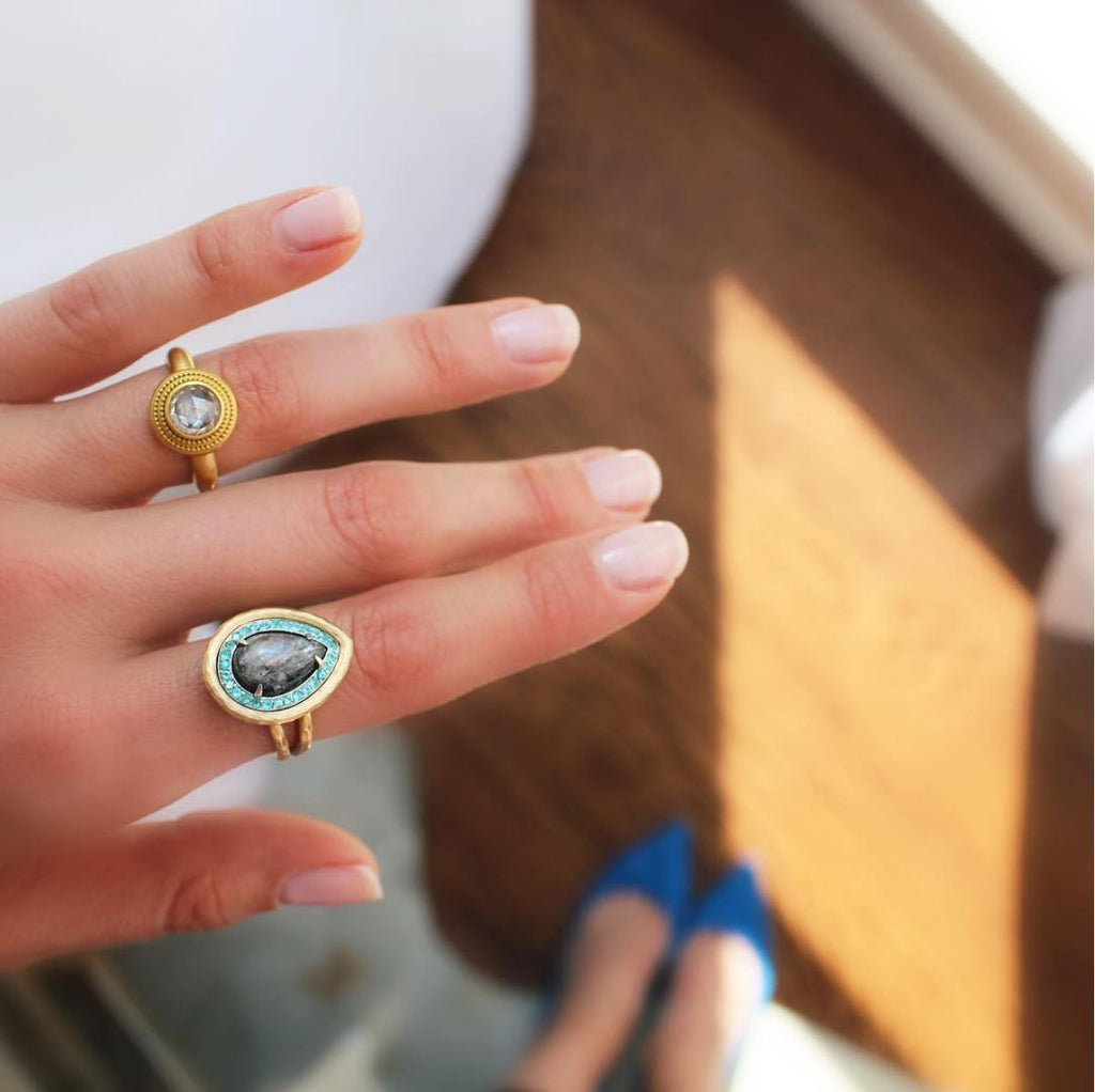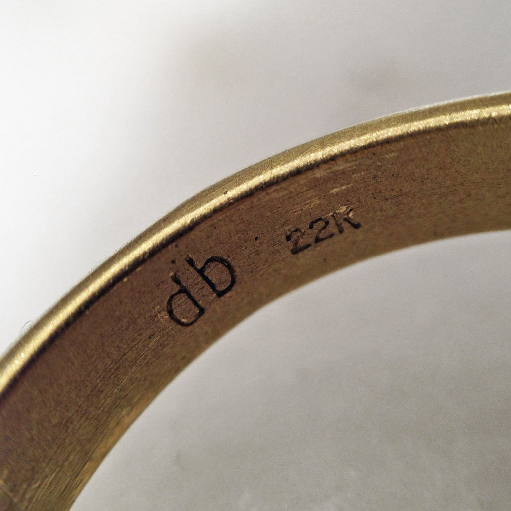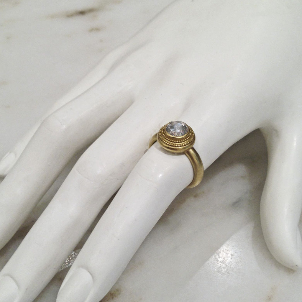 One-of-a-Kind Ring handcrafted in 22k yellow gold with a shimmering 1.22 carat rose-cut white diamond with handmade 22k gold granulated accents and a 20k yellow gold shank. Size 6.5 (Can be Sized).