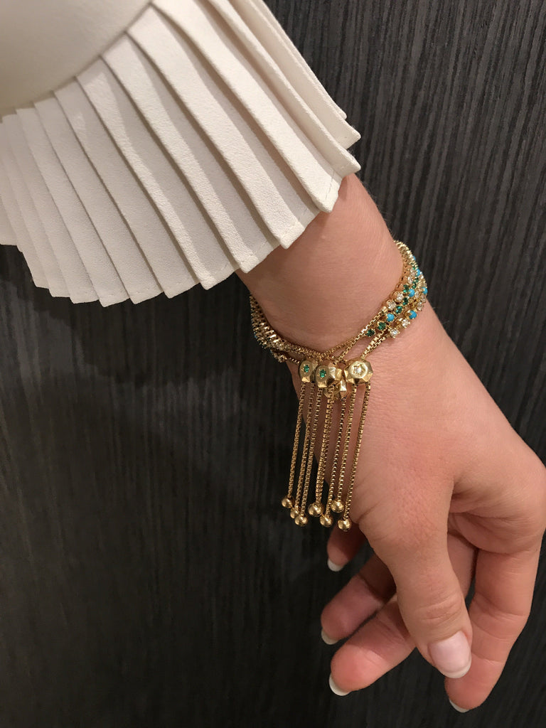 Fern Freeman Emerald and Diamond Gold Bolo Bracelet