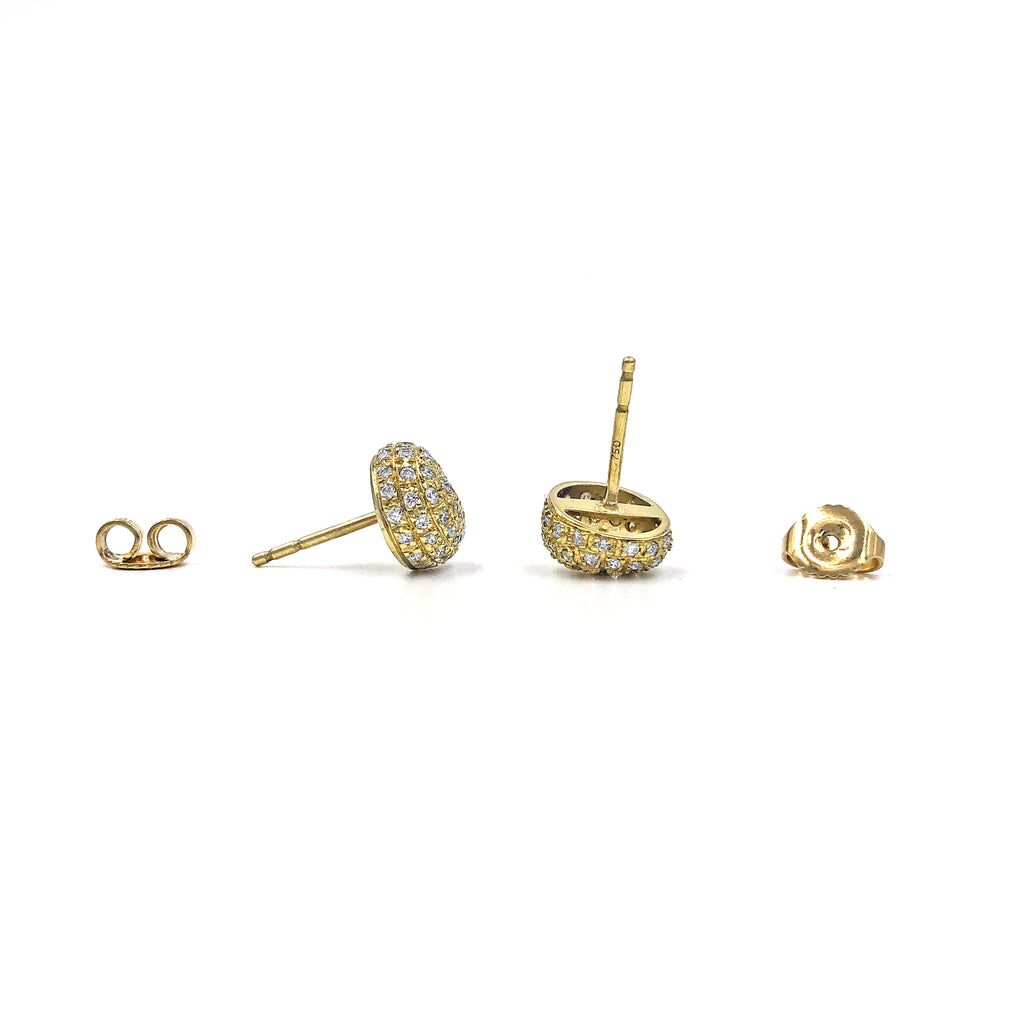 Pebble Stud Earrings handcrafted by award-winning jewelry artist John Iversen featuring round brilliant-cut white diamonds set in 18k yellow gold. Stamped 750