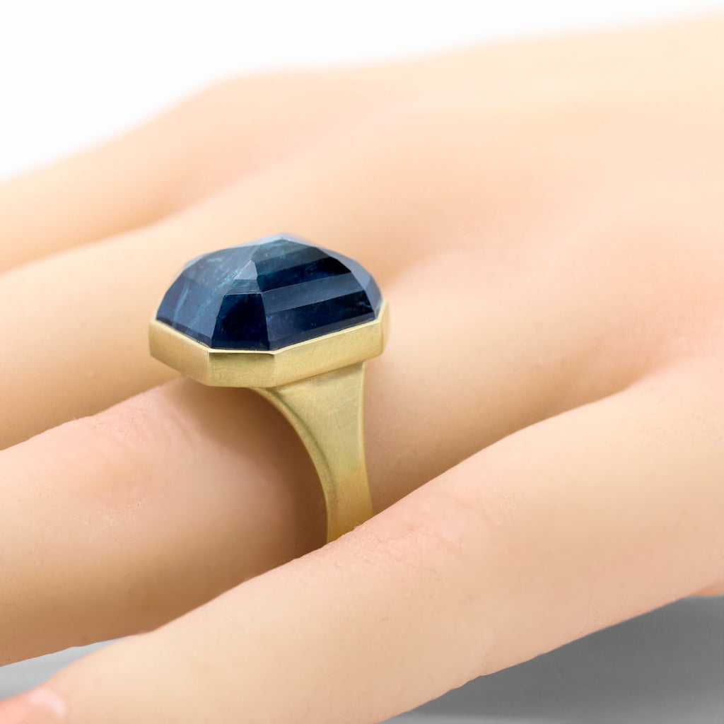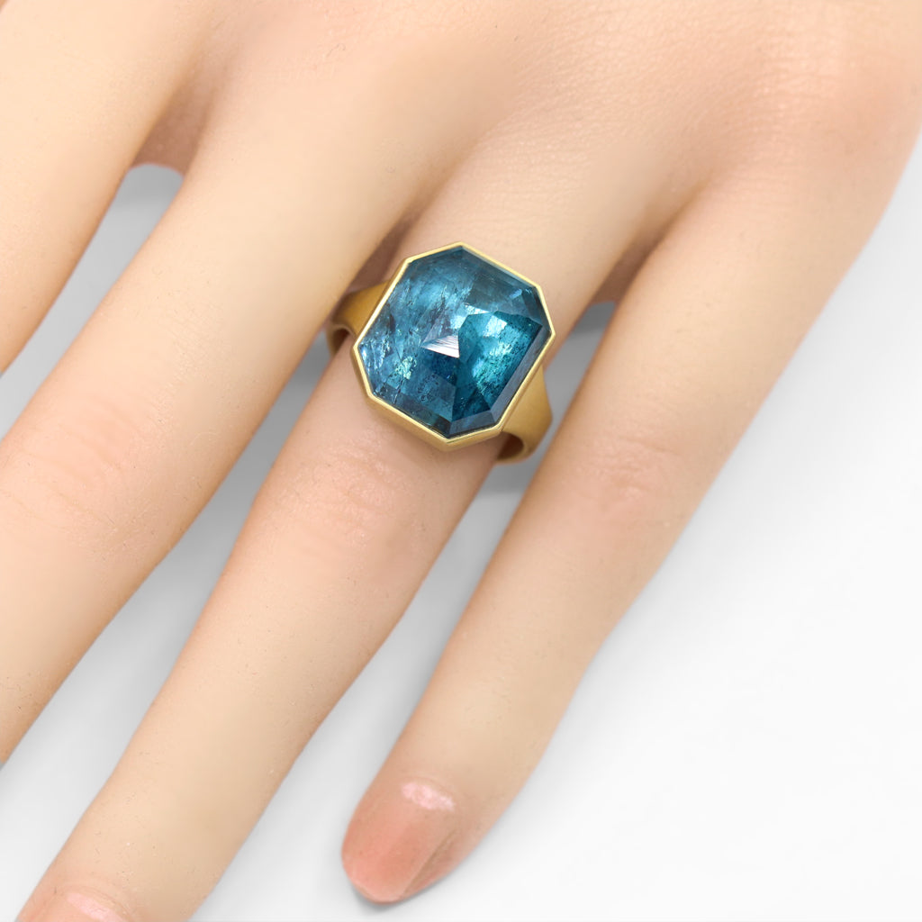 Lola Brooks 13.53 carat Deep Blue Indicolite Tourmaline Octagon Gold Ring