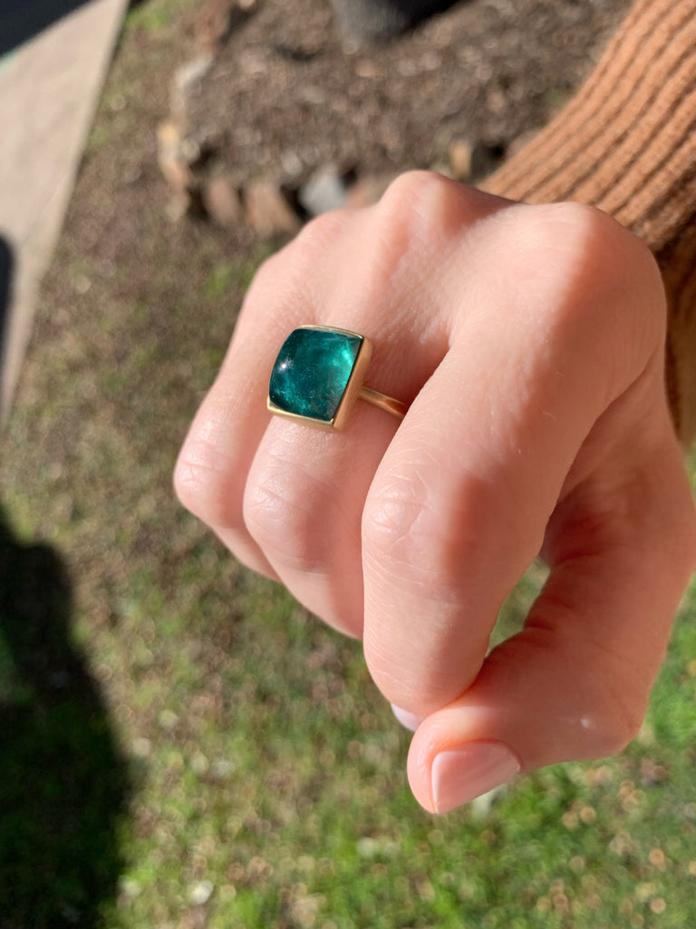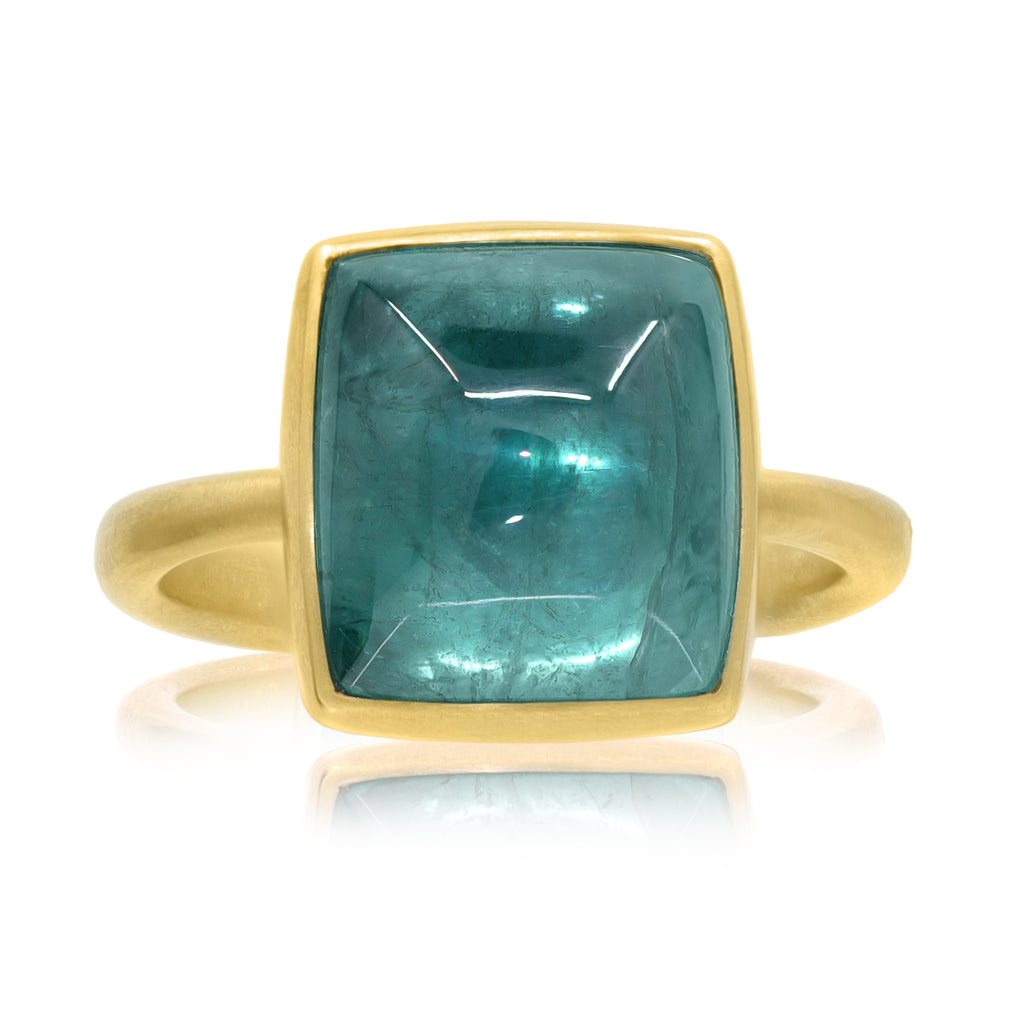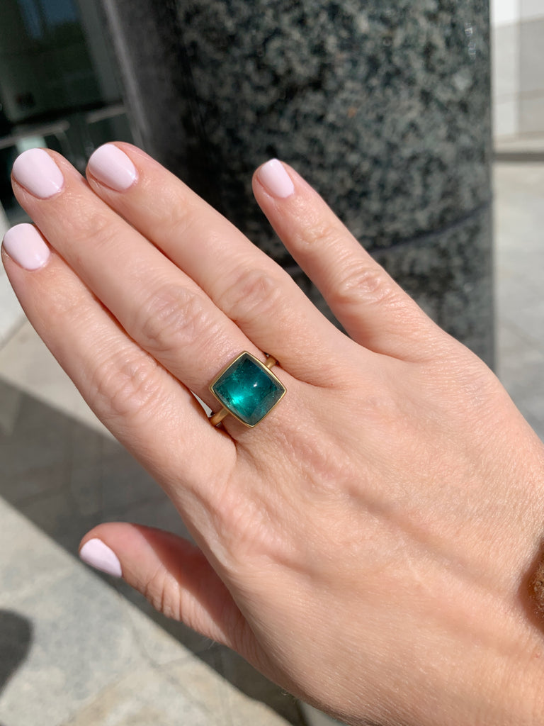 Lola Brooks Indicolite Green Blue Tourmaline Cushion Gold Ring