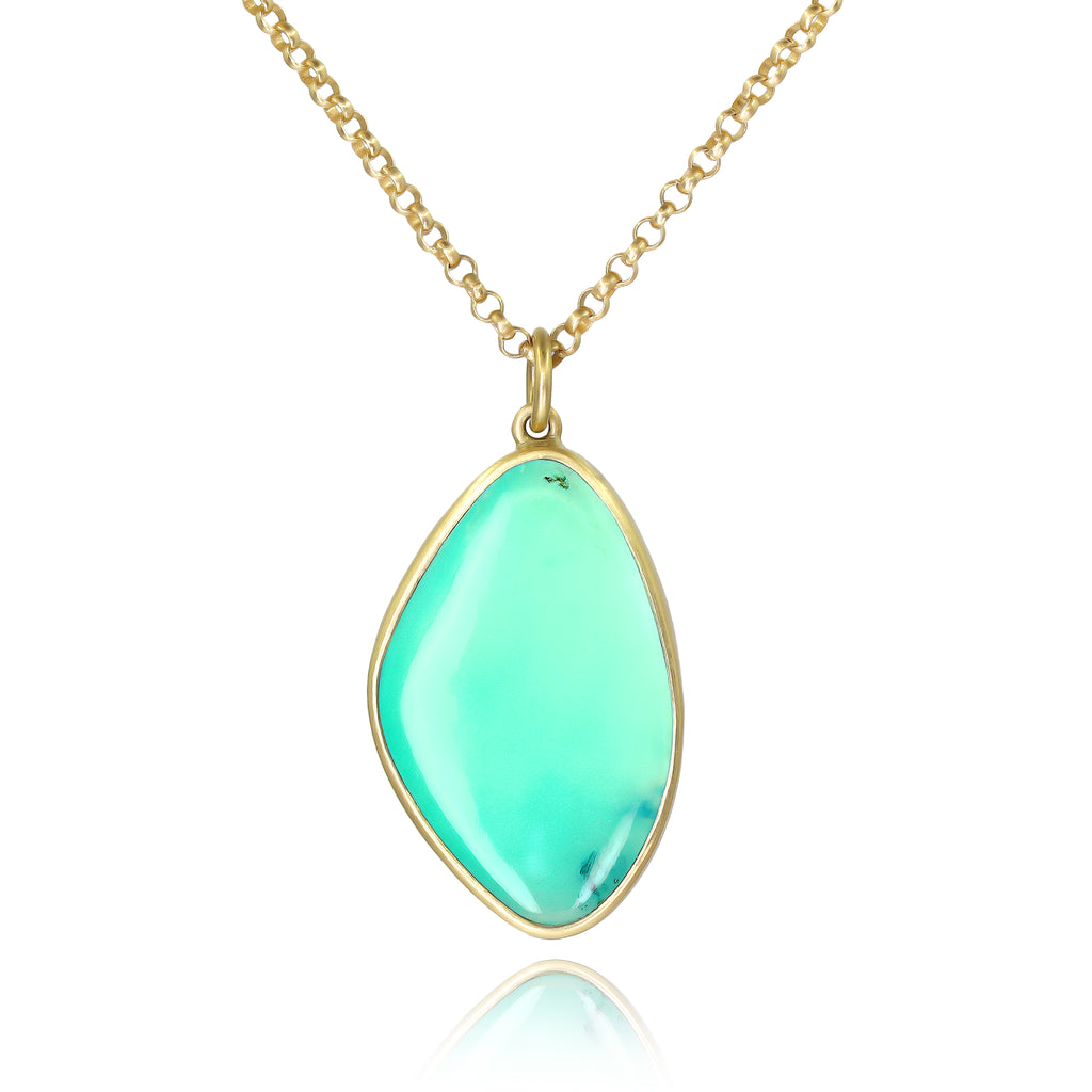 This color!!! One of a Kind Necklace hand-fabricated by jewelry maker Lola Brooks showcasing a stunning 5.41 carat freeform Peruvian opal cabochon bezel-set in Lola's signature matte 18k yellow gold and finished on an 18k yellow gold chain. Stamped and Hallmarked.