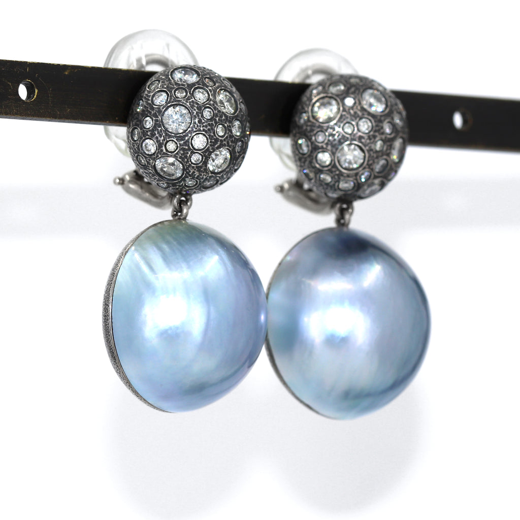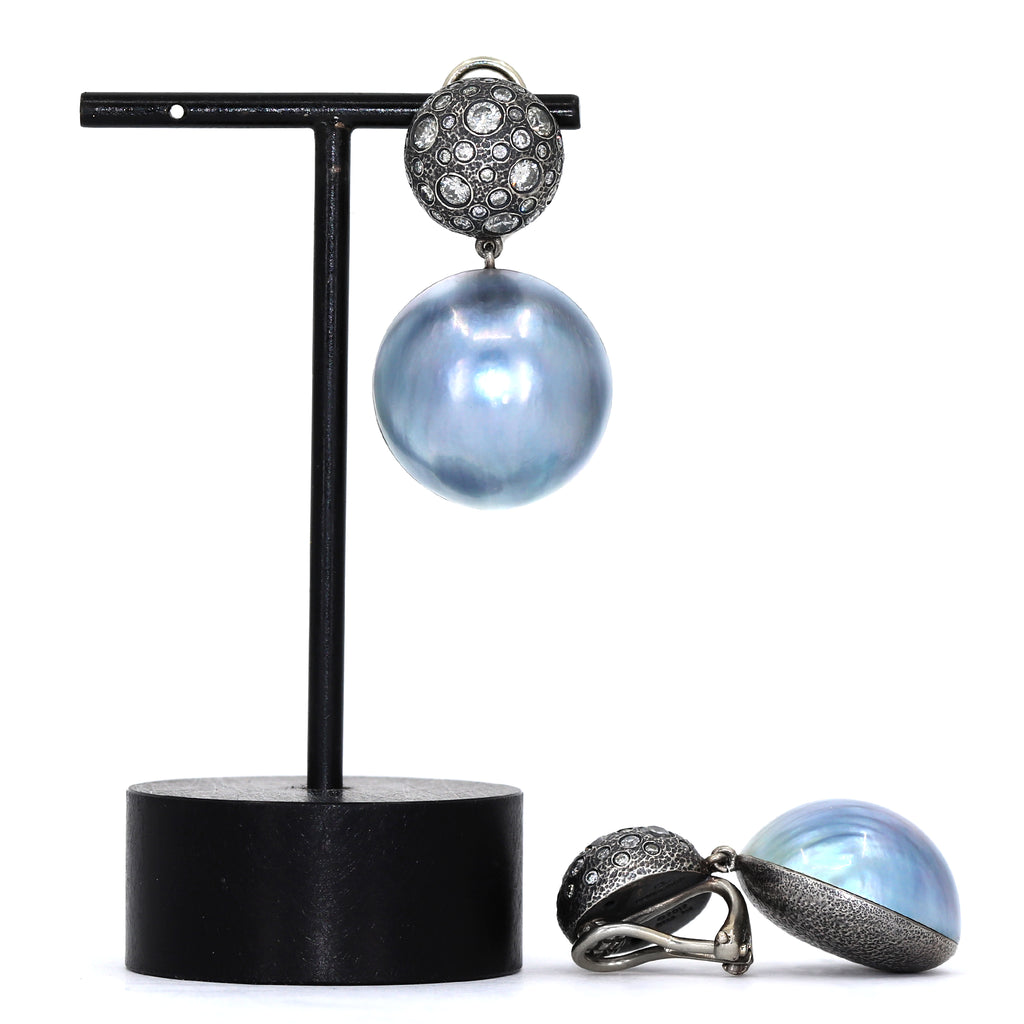 Pedro Boregaard 2.75tcw Diamond Blue Mabe Pearl Clip Drop Earrings