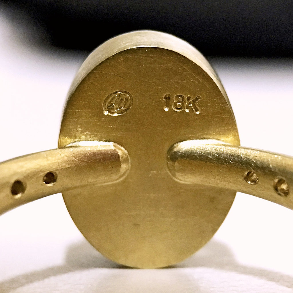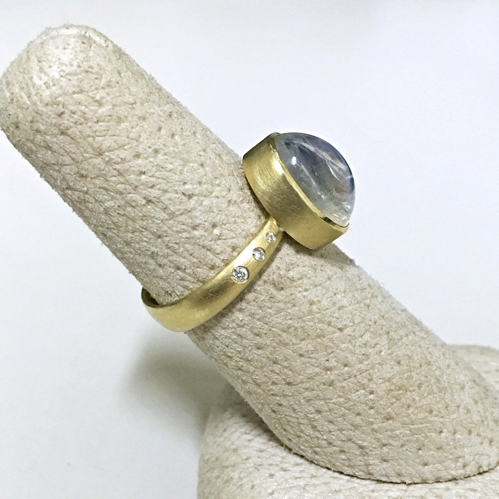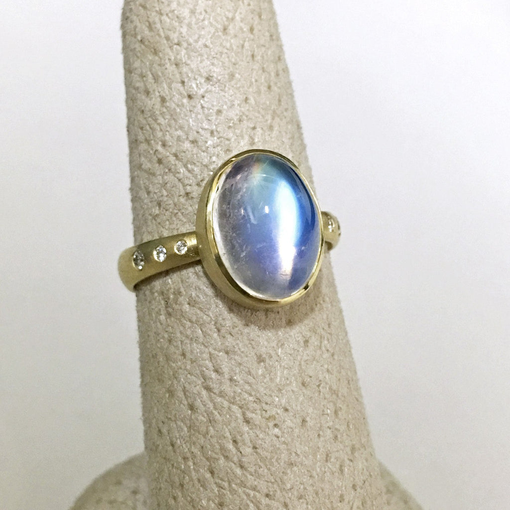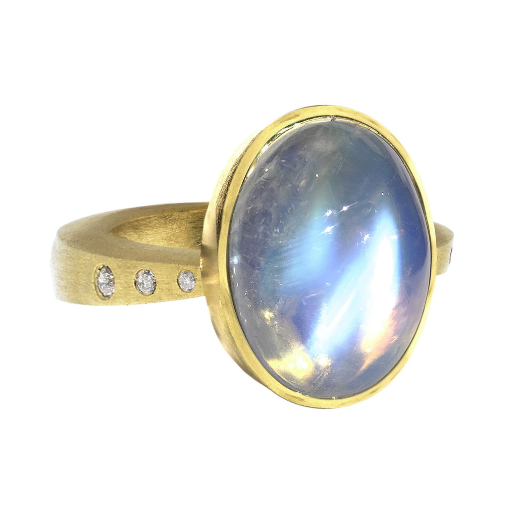 Robin Waynee Oval Rainbow Moonstone Diamond Gold Button Ring
