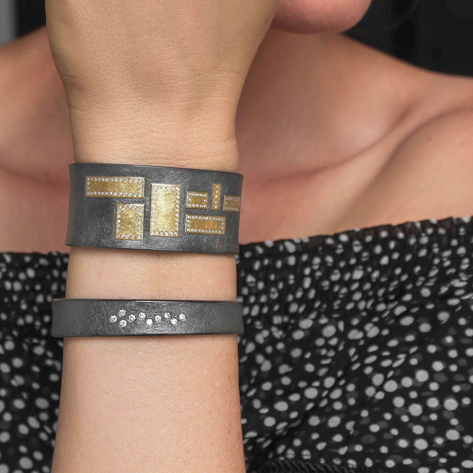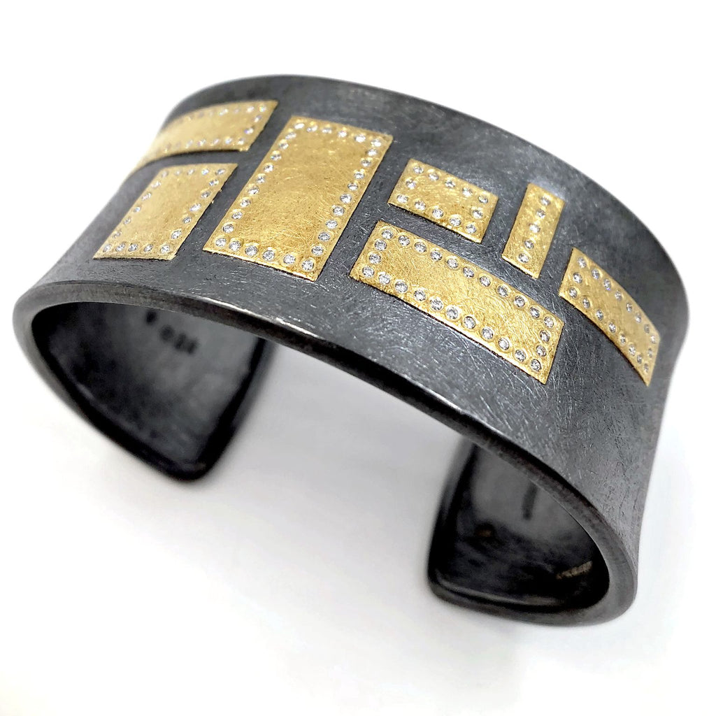 Todd Reed Limited Edition Diamond Gold Windows Silver Cuff Bracelet